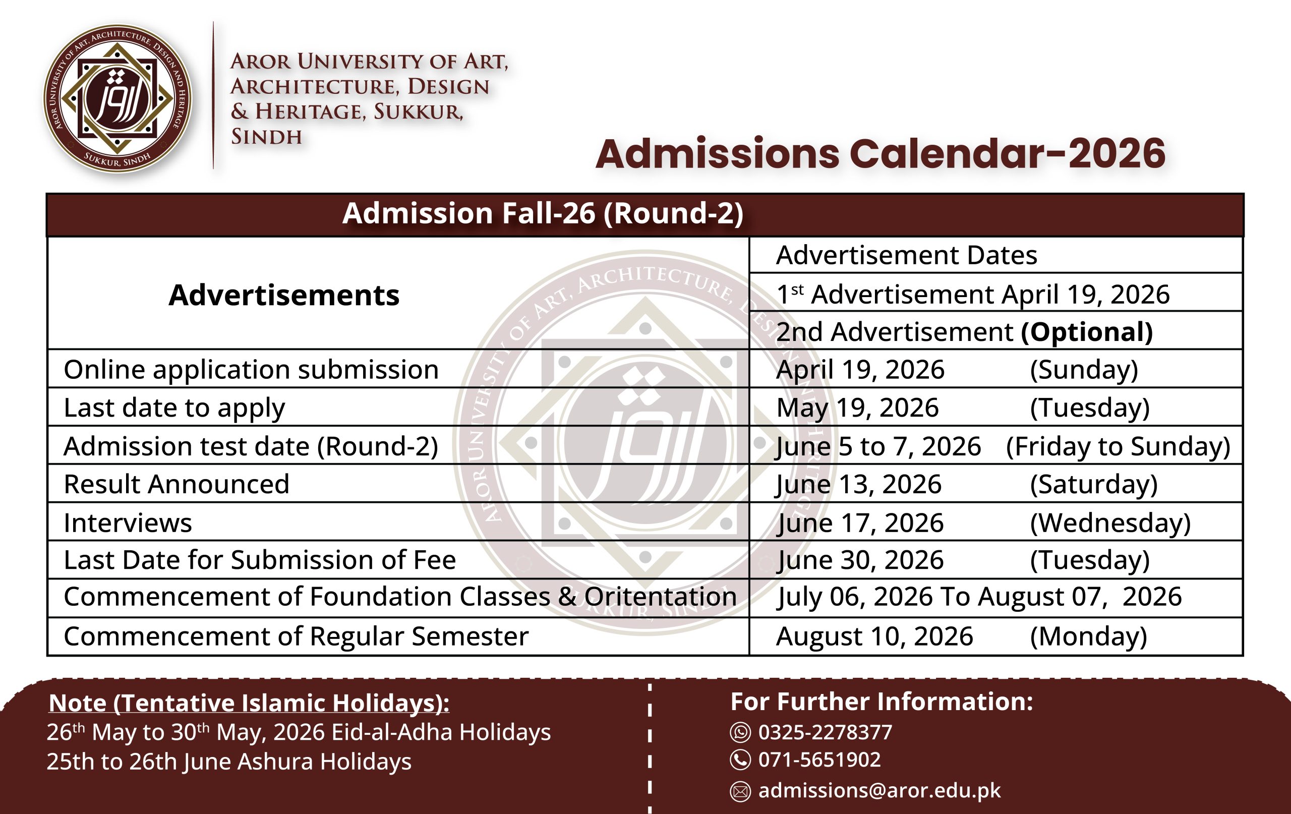 Aror University of Art, Architecture, Design & Heritage Sukkur revitalizes historical Aror, aiming to become a unique higher education institution by blending traditional values with cultural and religious diversity. Established in 2020, it now offers a platform for emerging artists, featuring the Open Air Museum, Arts & Crafts Gallery, and Pakistan’s first wax sculpture exhibit.